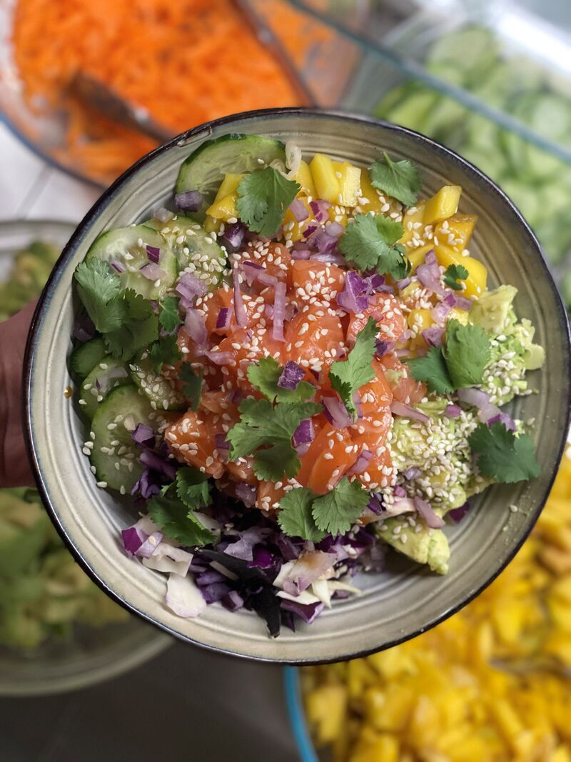 Chez Aloha The Poké Bar, le poké est un repas complet alliant céréales, protéïnes, fruits, légumes, condiments, herbes fraîches…
